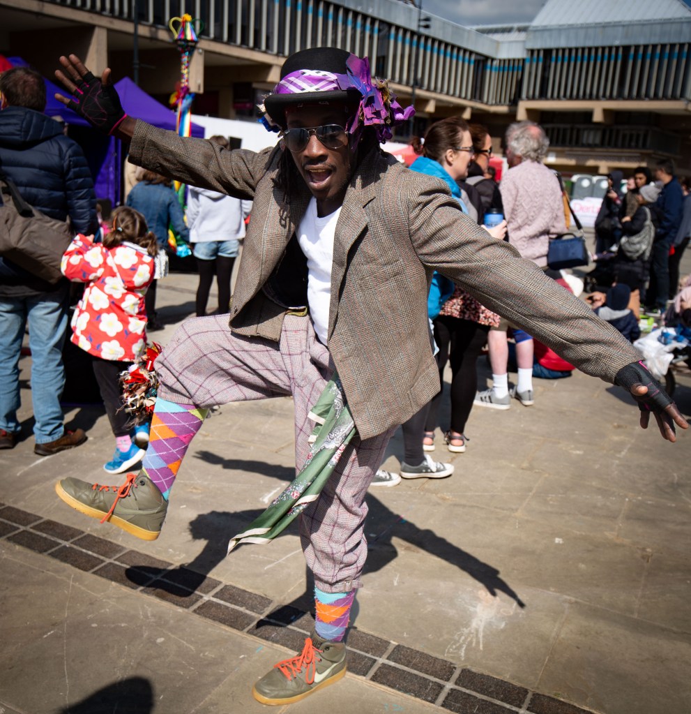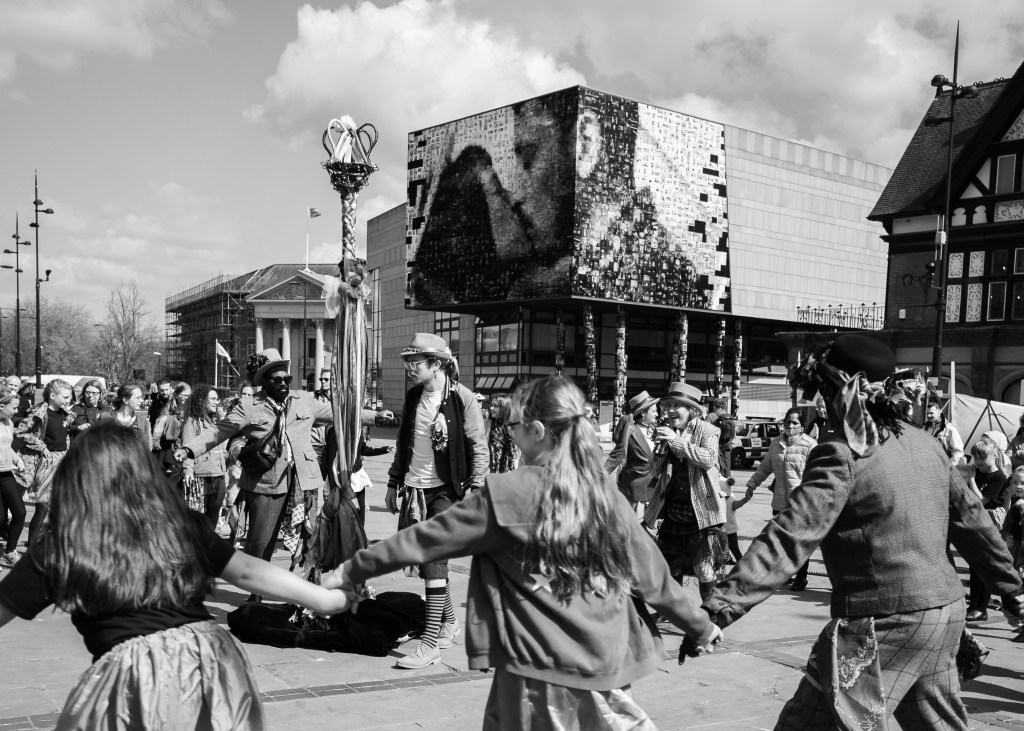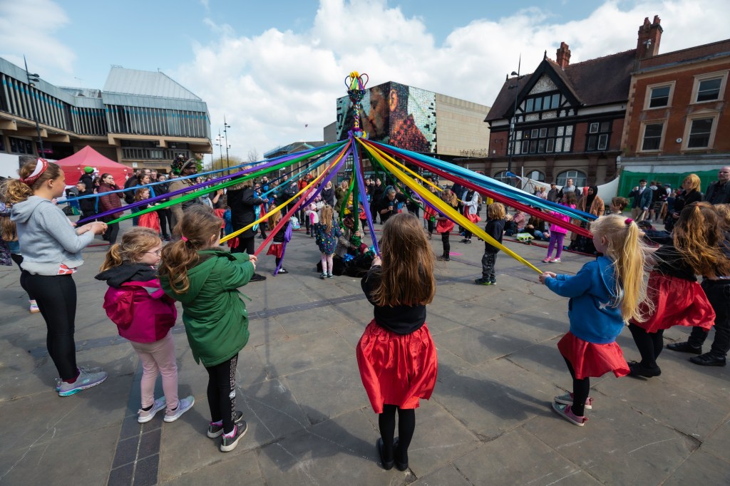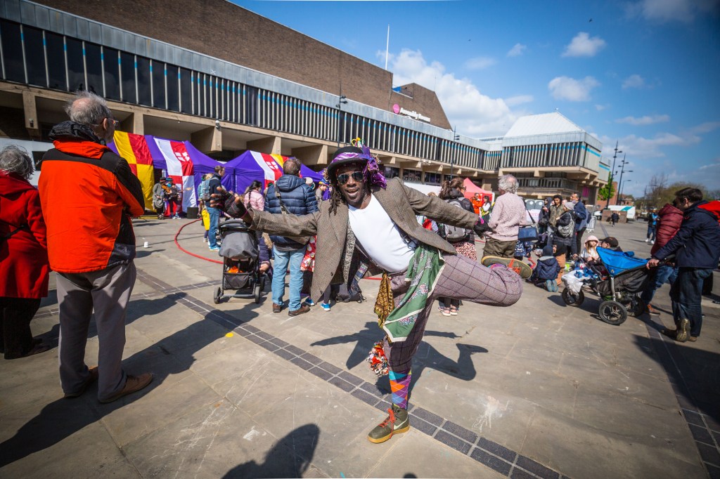 St George’s Day was celebrated in Derby city centre last Saturday with games, archery and dances and greetings to the dragon who was visibly struggling from a running nose – I wonder why?